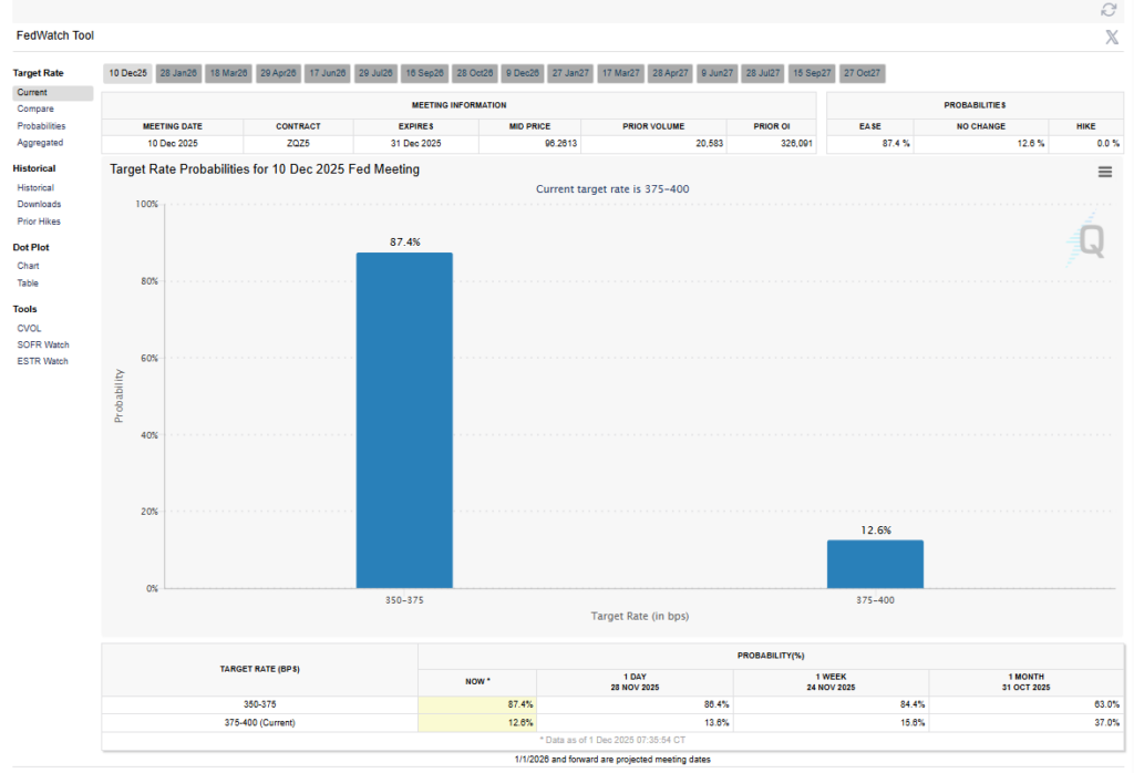 Market sentiment, as reflected by the CME’s FedWatch tool, currently assigns an 88% probability to a rate cut occurring.