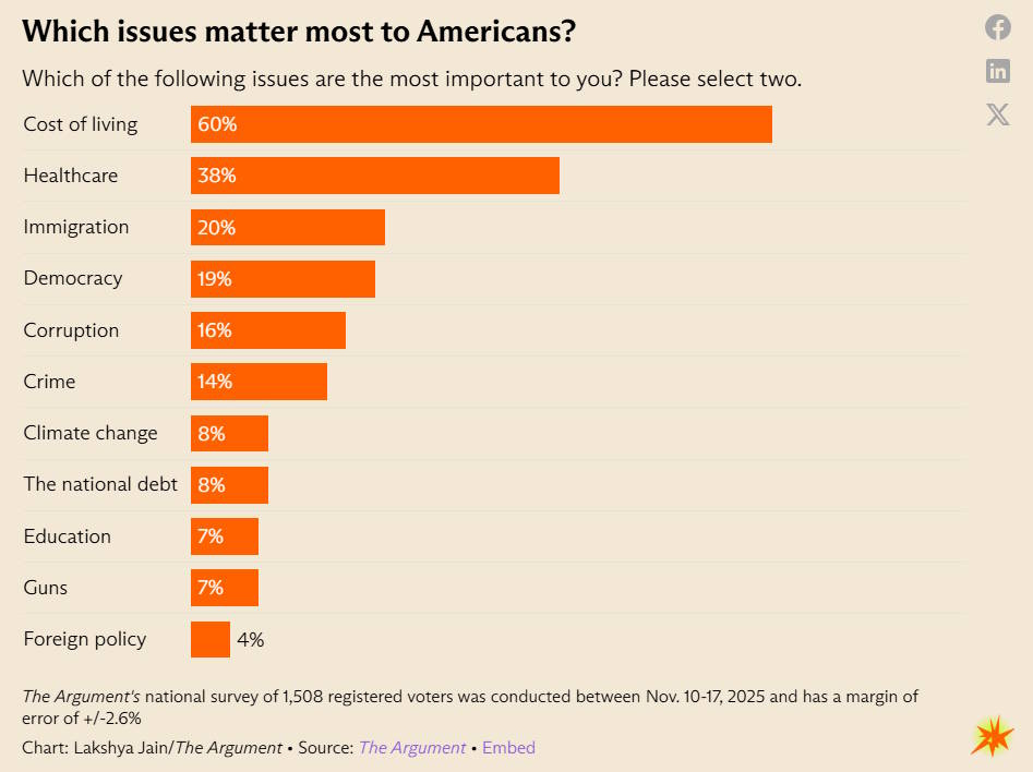 But the cost of living remains the most important issue for Americans, according to a recent survey.
