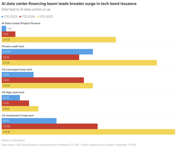 According to UBS, AI data centre and project finance issuance reached about $125 billion in 2025, up from just $15 billion a year earlier.
