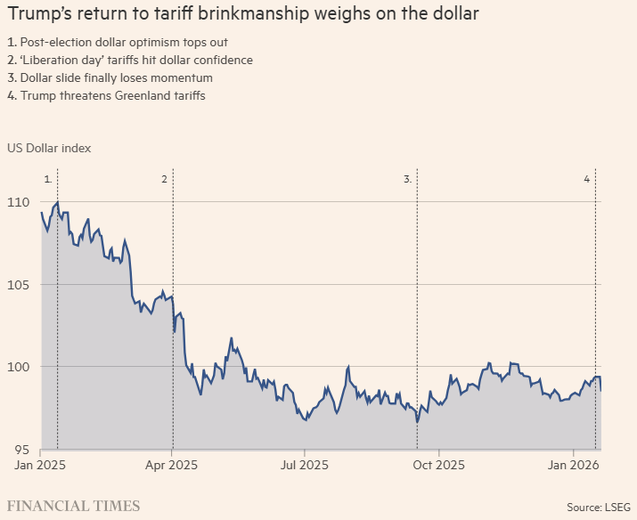 Now, investors are less convinced there is an off-ramp on Greenland, so the issue is no longer marginal tariffs, but the use of markets as geopolitical pressure points.