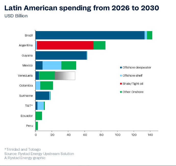 The primary catalyst for heightened regional investment is the thriving shale sector, projected to expand from $9.4 billion in 2025 to almost $11 billion this year, entirely driven by Argentina, according to Rystad Energy.