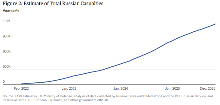 A recent study estimates Russian casualties at roughly 1.2 million, with as many as 325,000 killed.