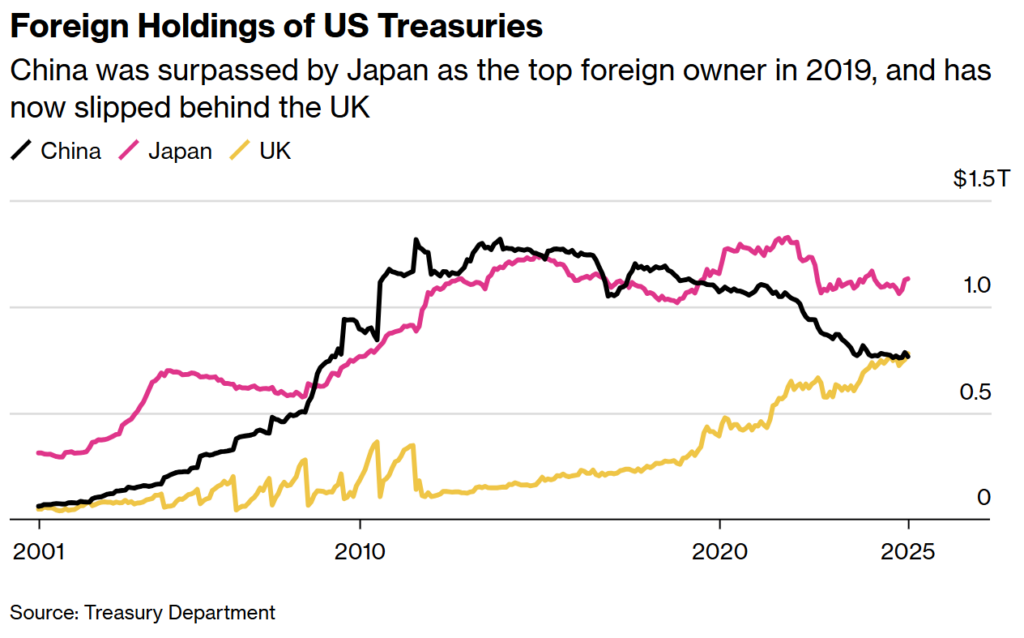 As of the end of 2025, China’s holdings of US Treasuries have fallen to roughly $680 billion, according to US Treasury data, down from more than $1.3 trillion at their peak in the early 2010s.